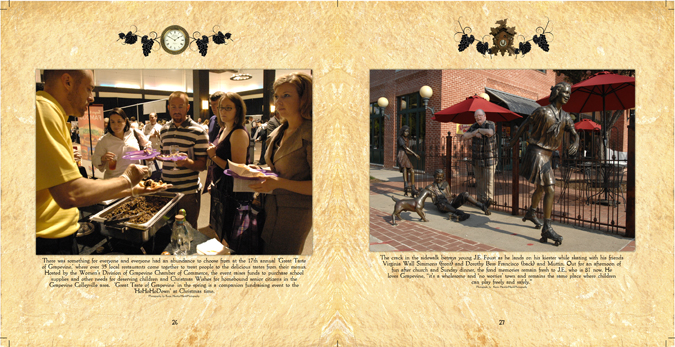 page 26 & 27 Sponsorships and Advertising: For interested companies and individuals, CLICK HERE * * * * * As always I need: *writers/photographers/contributors suggestions. *written articles for the book. Particularly, we are needing articles that reflect Grapevine and what makes it such a wonderful place. *suggestions for photography that is timely of people and events. |