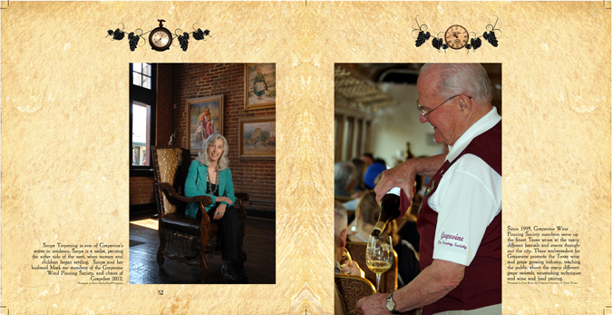 page 48 & 49 Sponsorships and Advertising: For interested companies and individuals, CLICK HERE * * * * * As always I need: *writers/photographers/contributors suggestions. *written articles for the book. Particularly, we are needing articles that reflect Grapevine and what makes it such a wonderful place. *suggestions for photography that is timely of people and events. |
