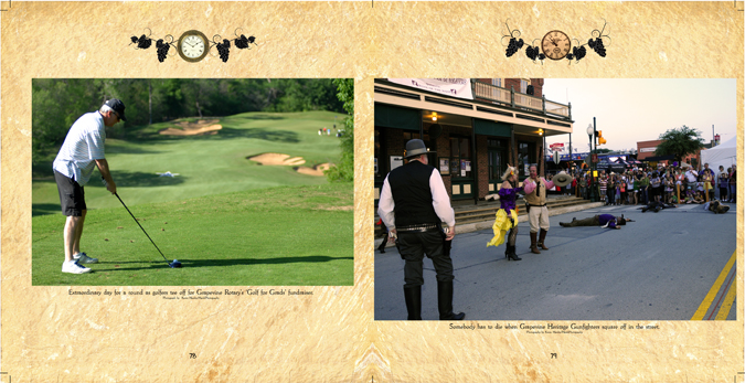 page 78 & 79 Sponsorships and Advertising: For interested companies and individuals, CLICK HERE * * * * * As always I need: *writers/photographers/contributors suggestions. *written articles for the book. Particularly, we are needing articles that reflect Grapevine and what makes it such a wonderful place. *suggestions for photography that is timely of people and events. |