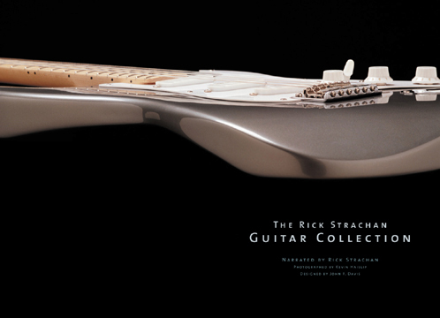 The only photograph Rick allowed me to shoot of him for the book. The Rick Strachan Guitar Collection, published 128 pages full color, hard cover with laminated dust jacket. This book literally became a labor of love as Rick and I worked for about a year and a half to two years photographing his guitars. Each week he would bring 4 or 5 guitars into the studio and I literally flew my cameras around them to find perspectives we loved. Then there was Rick. Every time we would get the film back, we would drool over it, compelling him to go out and purchase another beautiful instrument, or commission a custom guitar, and we would have to wait to include it. So at the end of the book is a silhouette of a guitar, "the next one." We consumed a lot of coffee during that time |